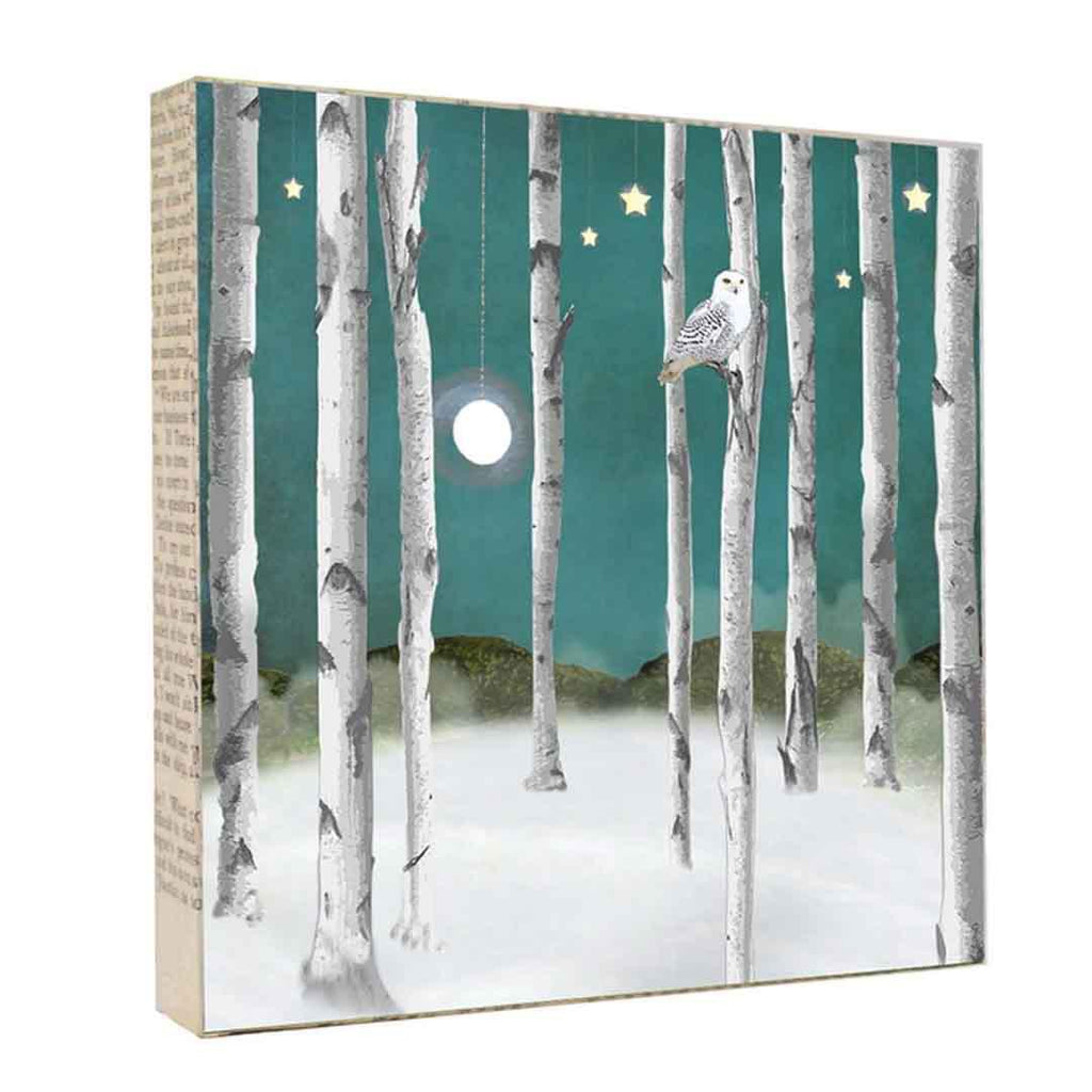- Materials: Reclaimed wood, repurposed book pages, printed image, sealed matte finish