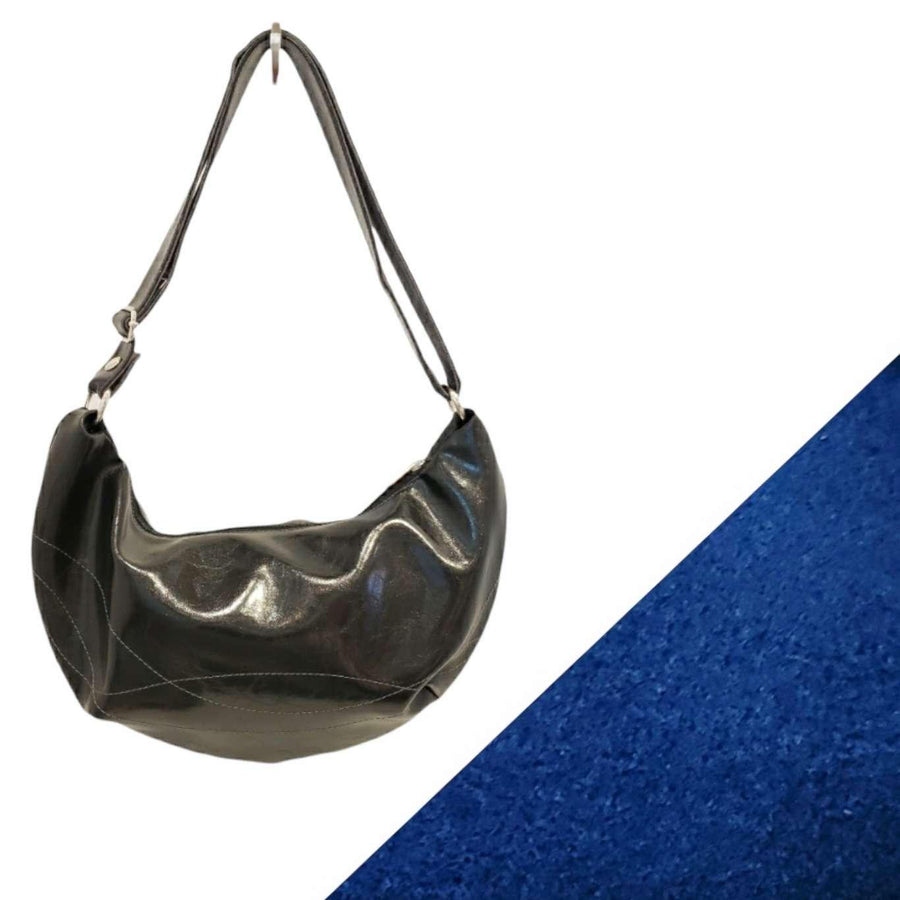 CK402A $240 - Black - Blue Lining - Foxtrot Medium Slouchy Crescent Bag