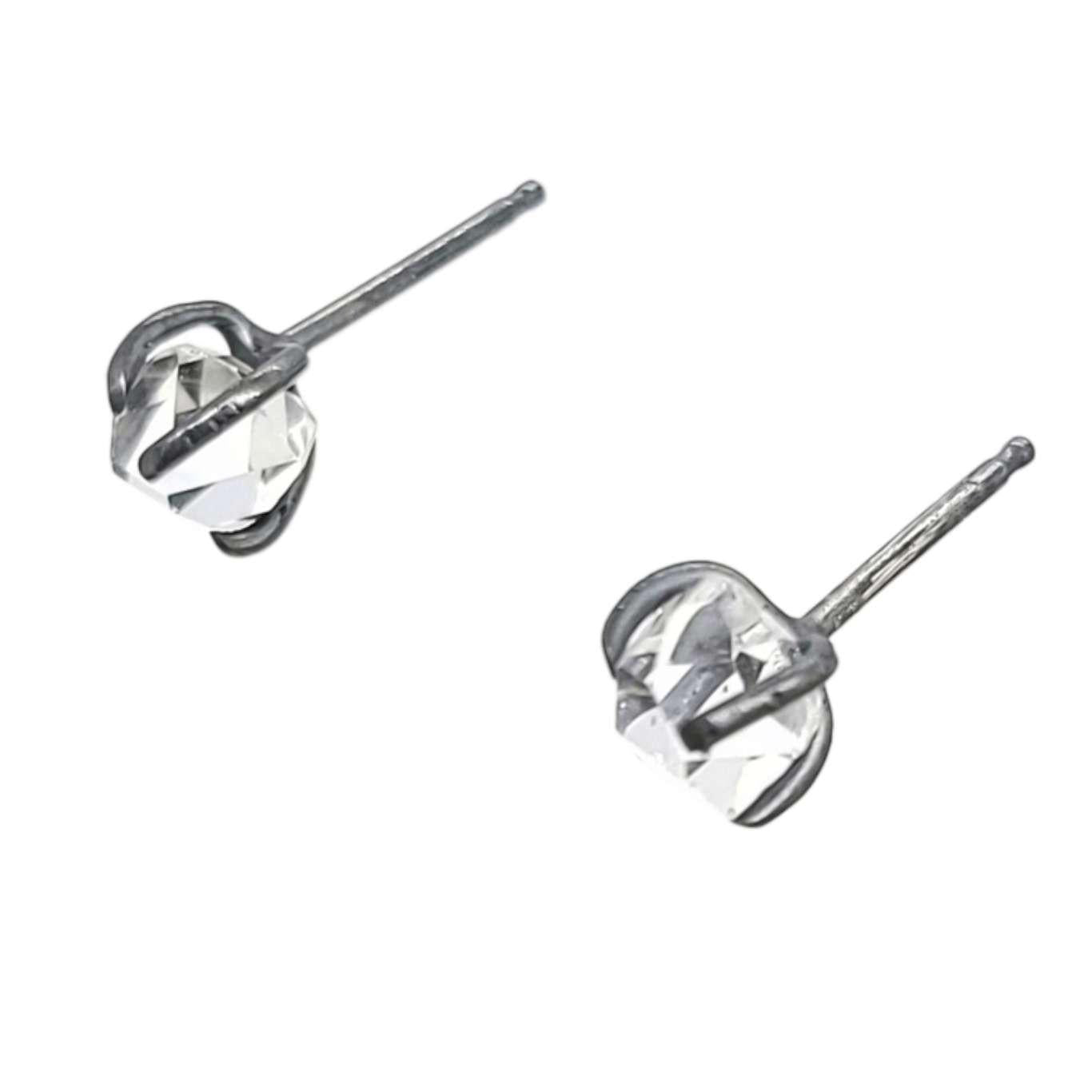 Earrings - Classic 5-6mm Herkimer Studs in Oxidized Sterling Silver by Storica Studio
