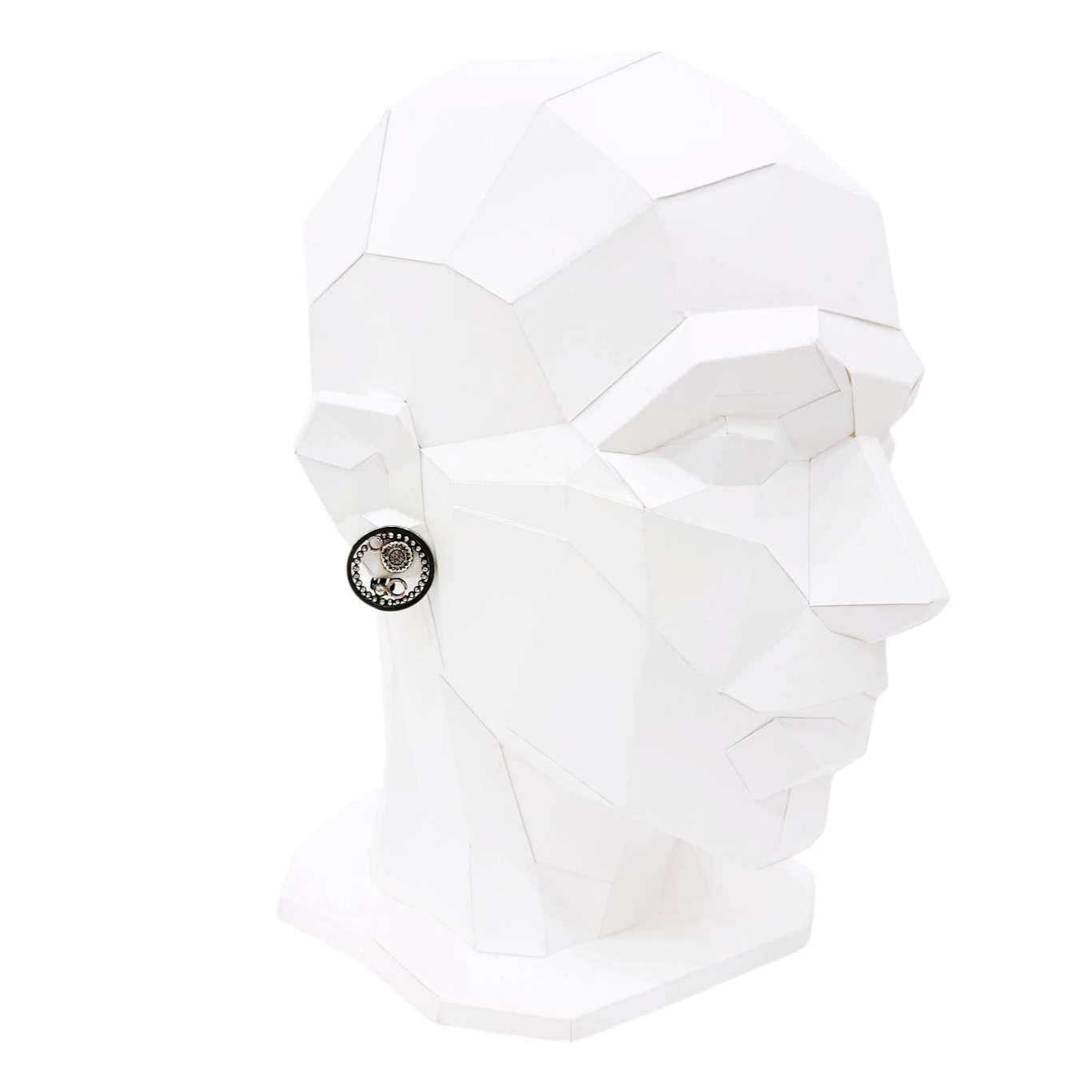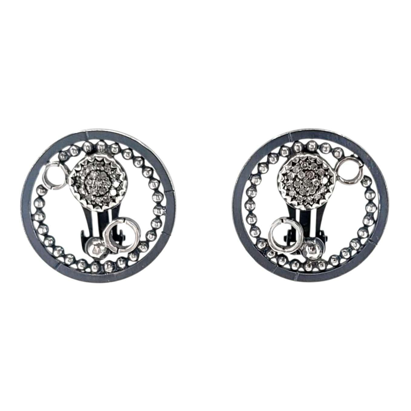 - Circular sterling silver clip-on earrings with glittering pavé diamond