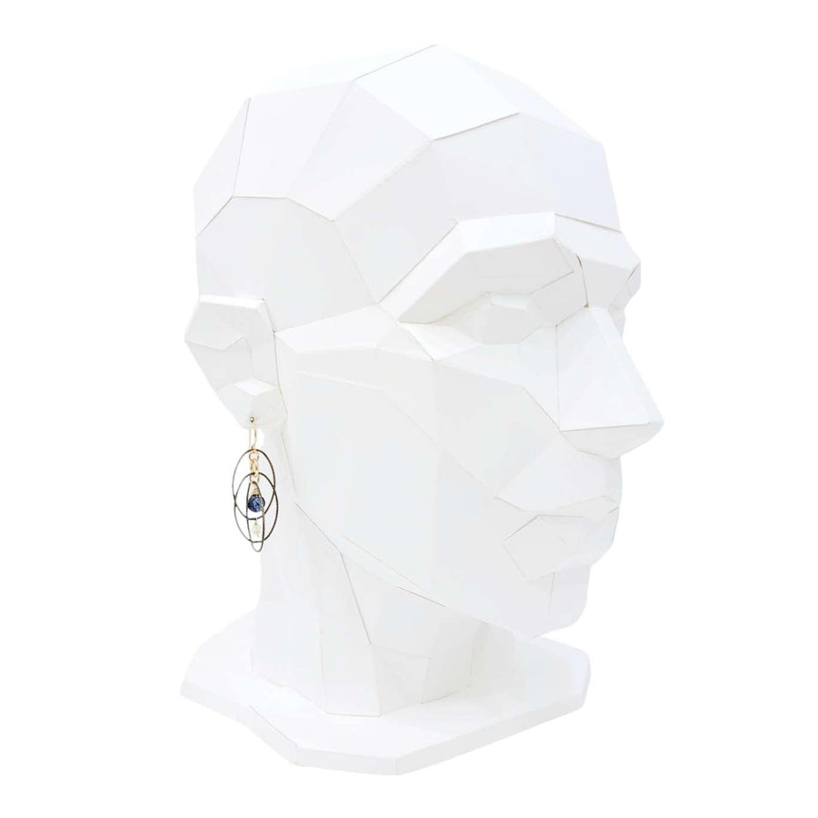 - Dangling oxidized sterling silver ovals with floating gemstone accents