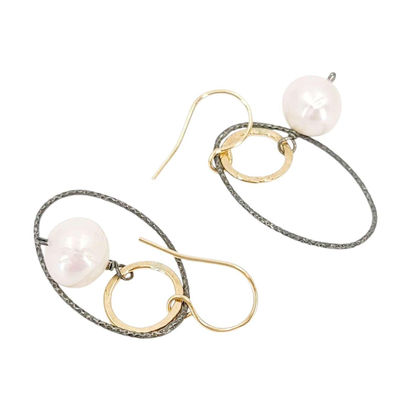 - Materials: 14k gold fill, oxidized sterling silver, freshwater pearls
