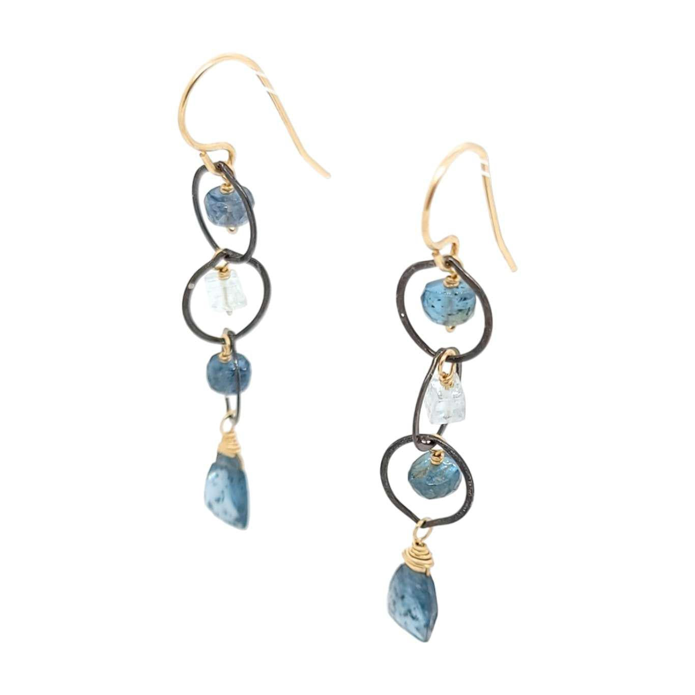 Earrings - Triple Circle Chain Dangles (Moss Kyanite, Aquamarine) by Calliope Jewelry