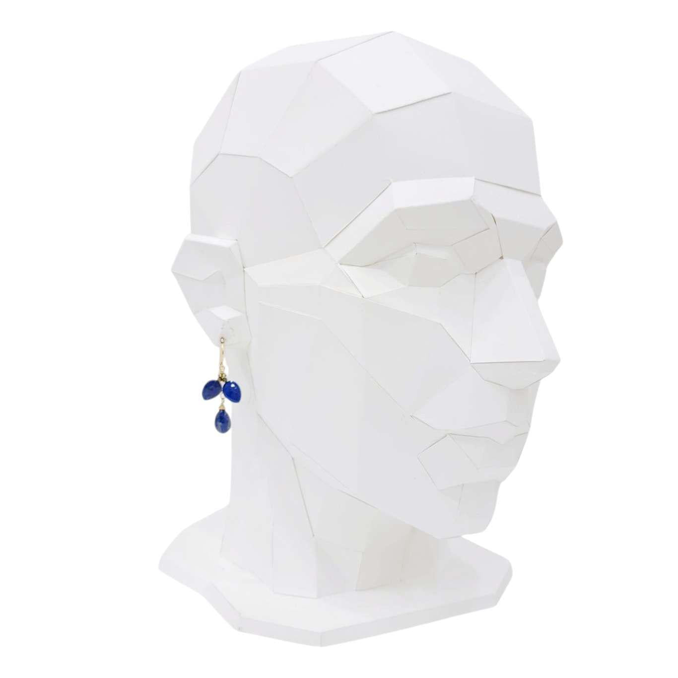 Three faceted gold-speckled lapis drops dangle elegantly from each of these earrings, topped off with tiny pyrite beads for a touch of extra sparkle.