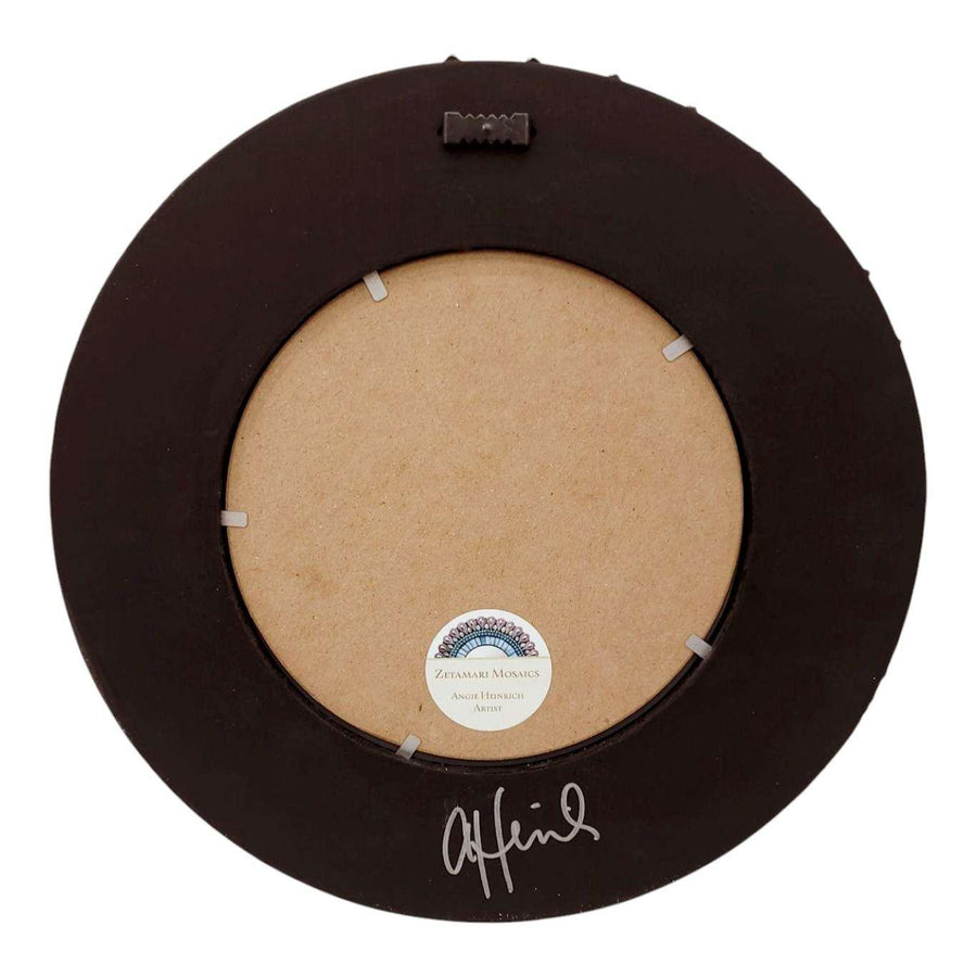 Zetamari's stunning mosaic mirror in a 10in round Magic Purples design featuring shimmering violet, iridescent indigo, and leaf glass tiles accented with purple and silver beads. Surprisingly light and very easy to hang with a regular picture hanger thanks to the self-leveling sawtooth hanger rated at least 2-3x the weight of the mirror for a secure hold.