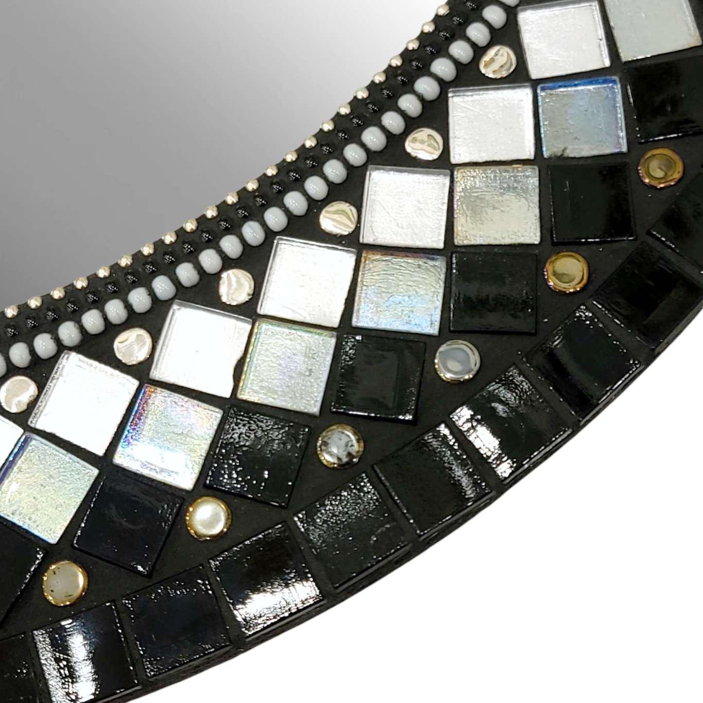 Mosaic Mirror - 19in Round (Ebony) by Zetamari Mosaic Artworks
