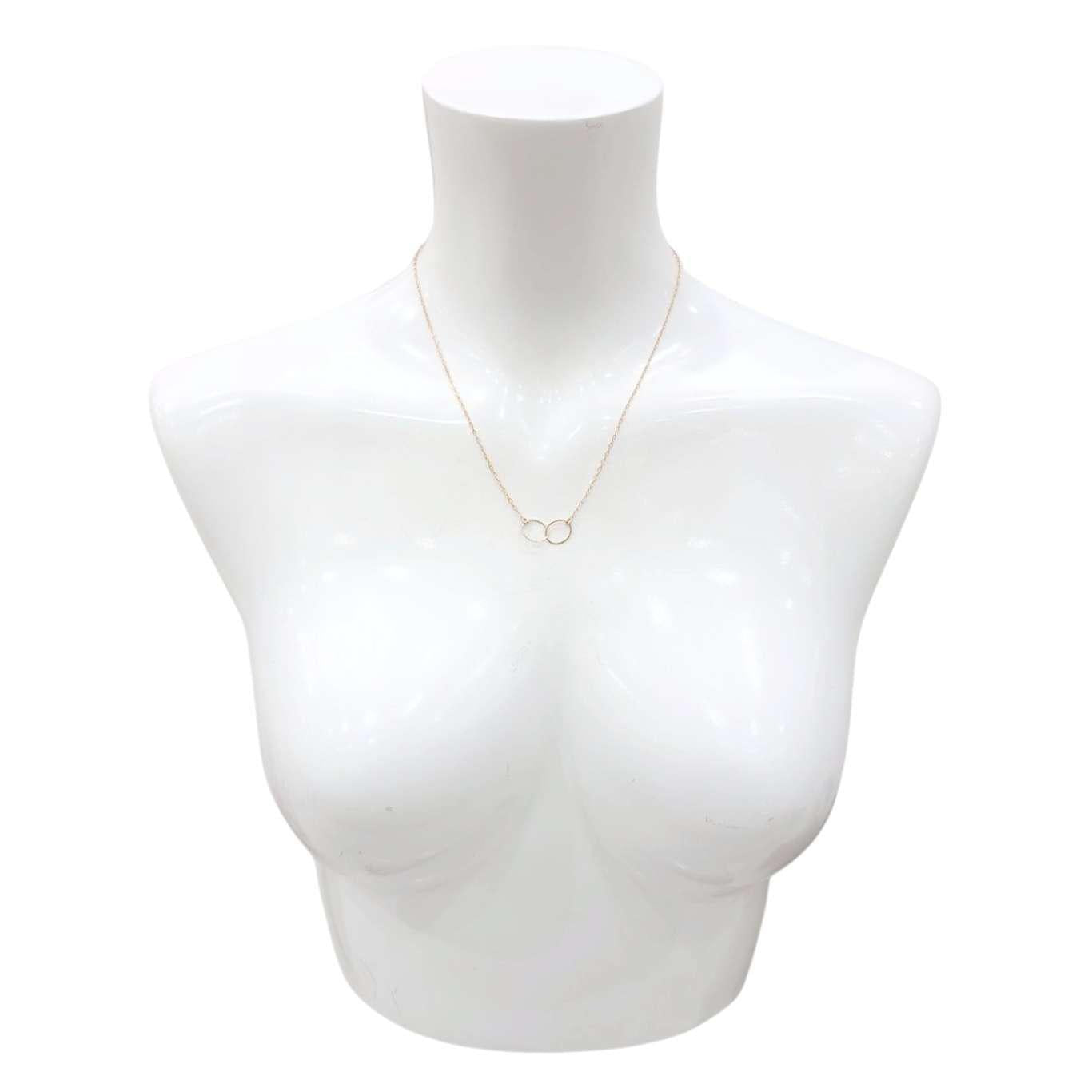 Two delicate textured circles of 14k rose gold fill interlock on a 17-inch chain.