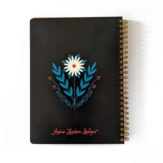 Notebook - Folk Flowers Floral on Black Spiral Bound by Amber Leaders Designs