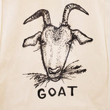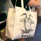 Goat design screen printed in Black ink on a large natural canvas tote bag.