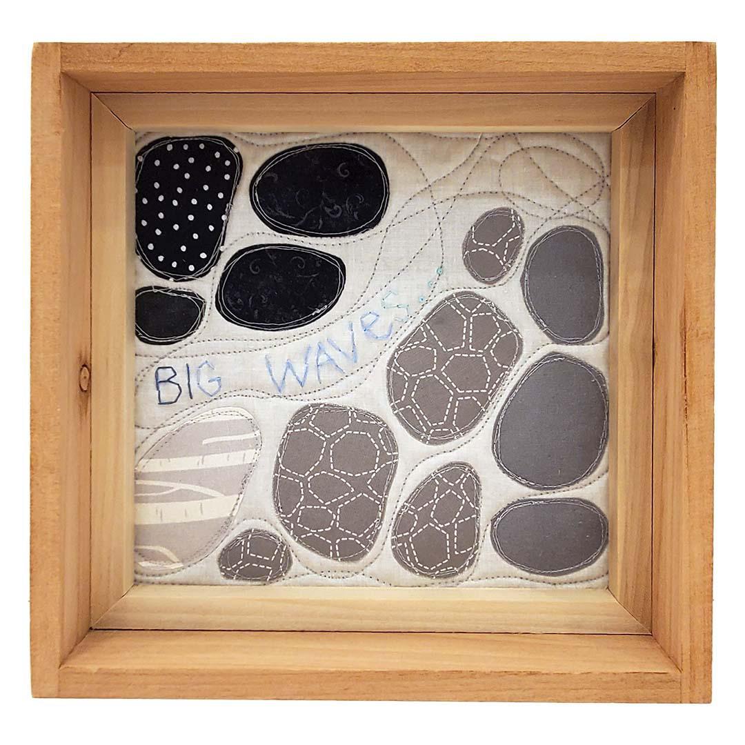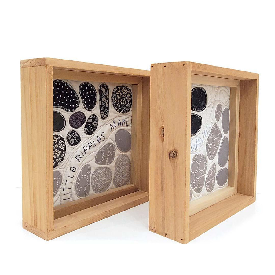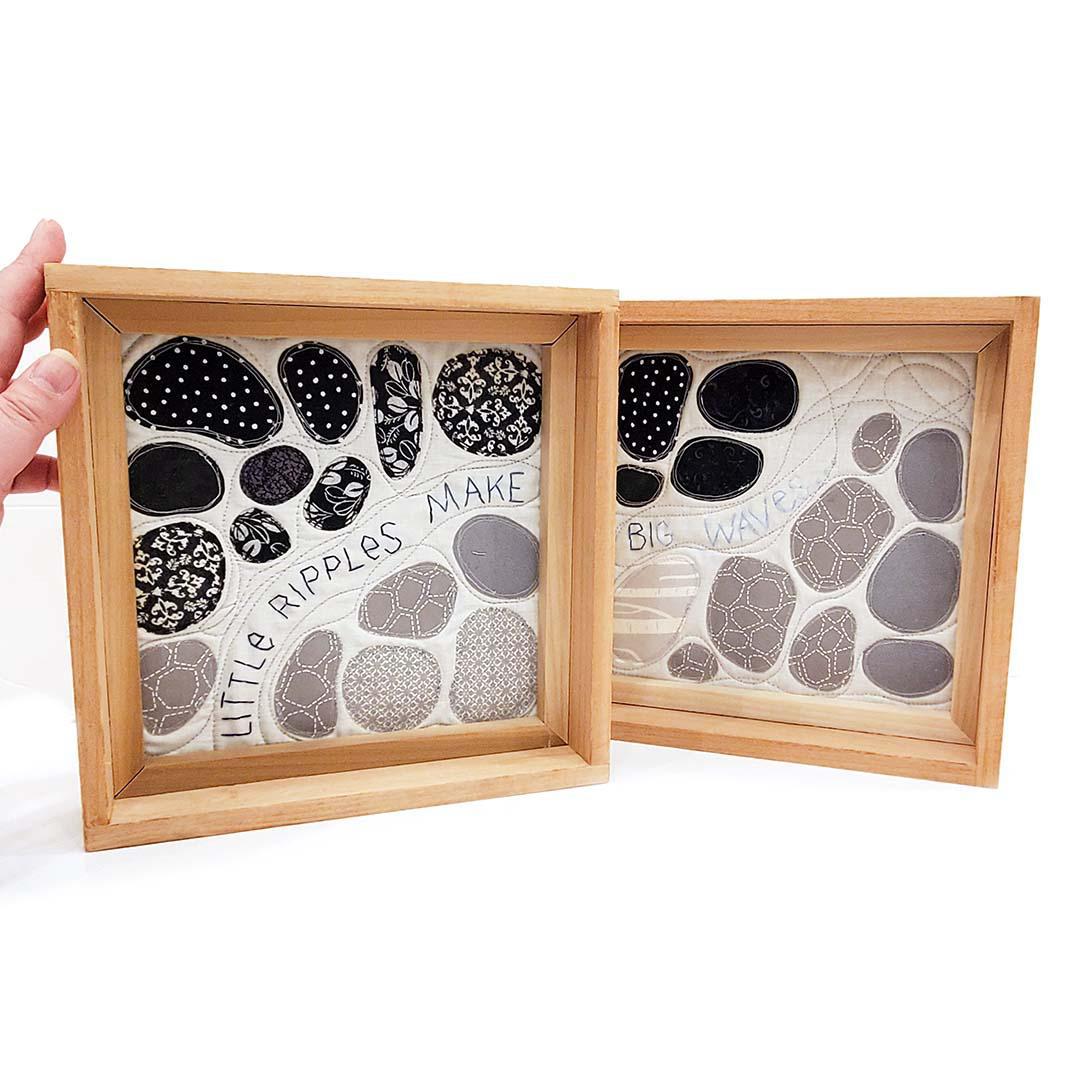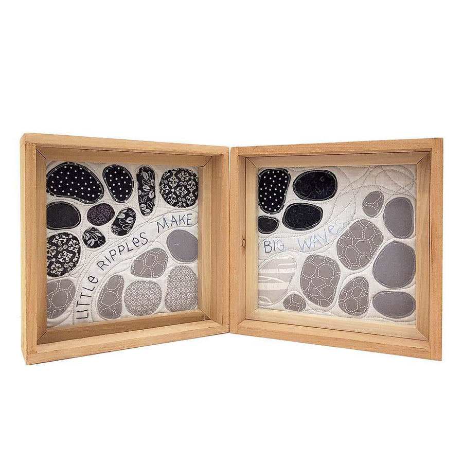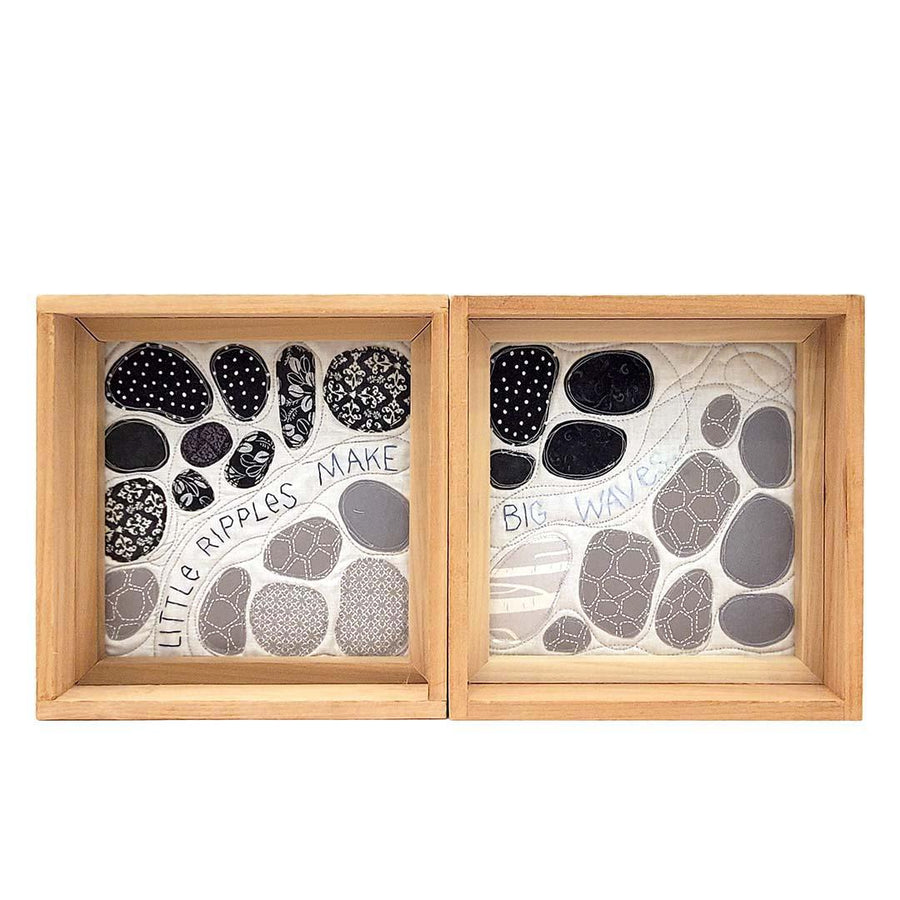 "Little Ripples Make Big Waves" quilted, appliqued, and embroidered diptych 2-part wall art piece.