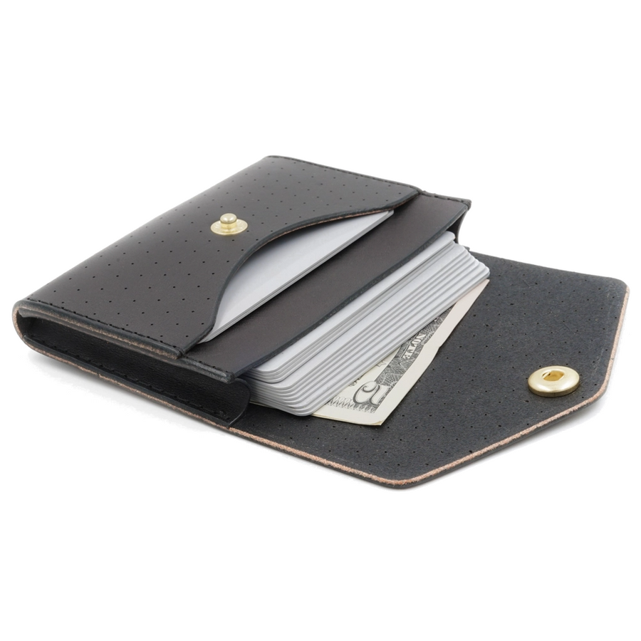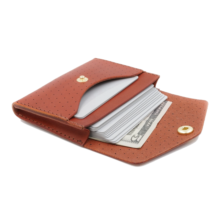 Holds 20+ cards and folded bills, with a button snap closure to keep your belongings safe.